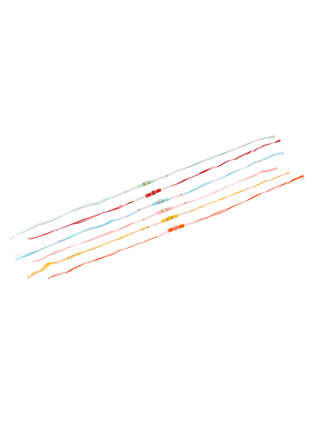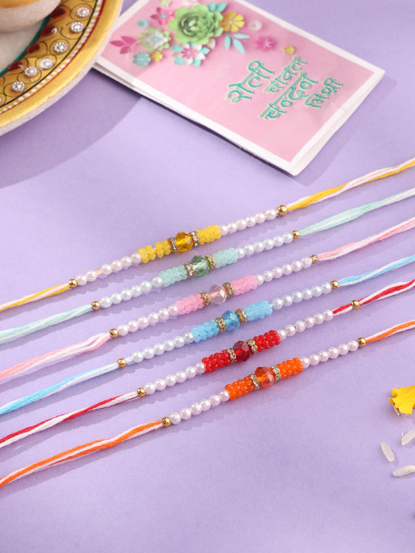 NVR Men Set of 6 Multicolor Artificial Stones & Pearls Rakhi with Roli Chawal Chandan & Mishri