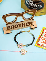• Style Note: Elevate your Raksha Bandhan celebrations with the elegant NVR Set of 2 Pink Round Shape Artificial Stones Bhaiya Bhabhi Rakhi. Featuring beautiful round artificial stones, this Rakhi set combines traditional charm with a contemporary design. Perfect for your Bhaiya and Bhabhi, it symbolizes love, protection, and blessings. The adjustable thread ensures a comfortable fit for all wrist sizes. Complete with Roli, Chawal, Chandan, Mishri with Assorted MDF wooden stand & 33.6 gm Hershey's Kisses Chocolate perfect for performing the traditional Raksha Bandhan rituals. A thoughtful and meaningful gift to celebrate the bond of love and togetherness this Raksha Bandhan.