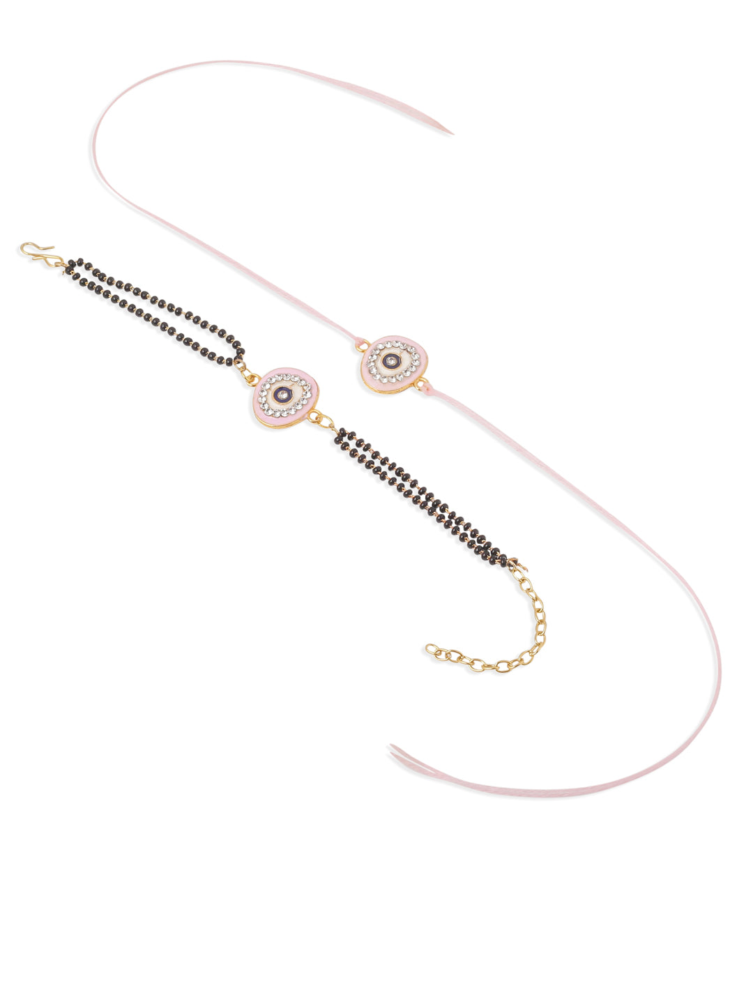 NVR Set of 2 Pink Round Shape Artificial Stones Bhaiya Bhabhi Rakhi Combo - Free Size