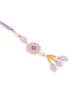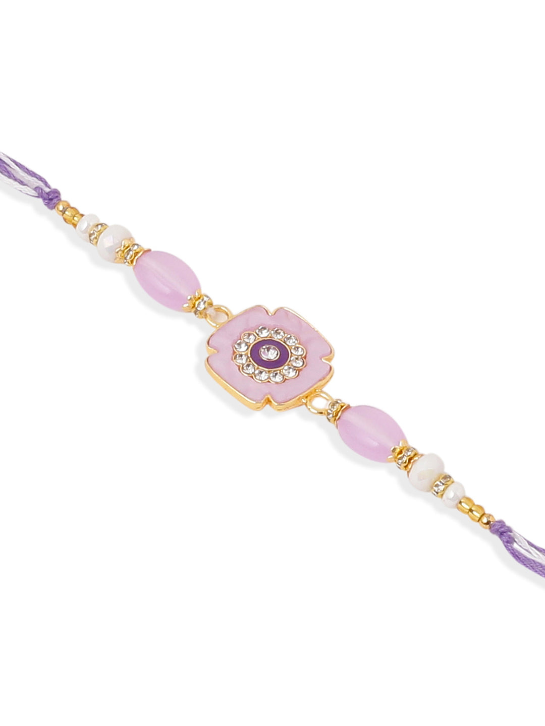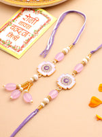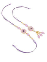 NVR Set of 2 Purple Artificial Stones & Beads Floral Design Thread Bhaiya Bhabhi Rakhi with Roli Chawal Chandan & Mishri