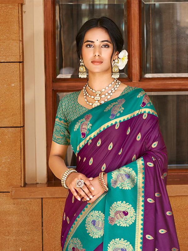 Sangam Prints Wine  Silk Woven Work Traditional Saree