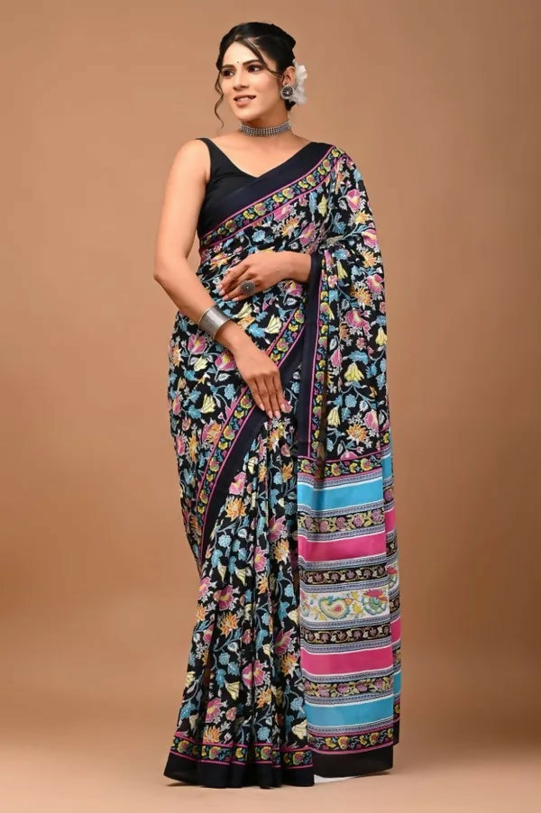 Exclusive Collection Black Multi Beautiful Mulmul Cotton Saree