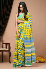 Exclusive Collection Yellow Multi Beautiful Mulmul Cotton Saree