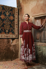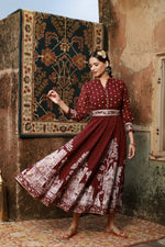 Juniper Women Wine Georgette Printed Flared Dress Shape: FlaredGeorgette Color: Wine Work/Pattern: Printed Neck line: Mandarin Collar Wash &a...
