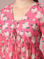 Myshka Women's Pink Printed Georgette A-Line Nyra-cut Kurta