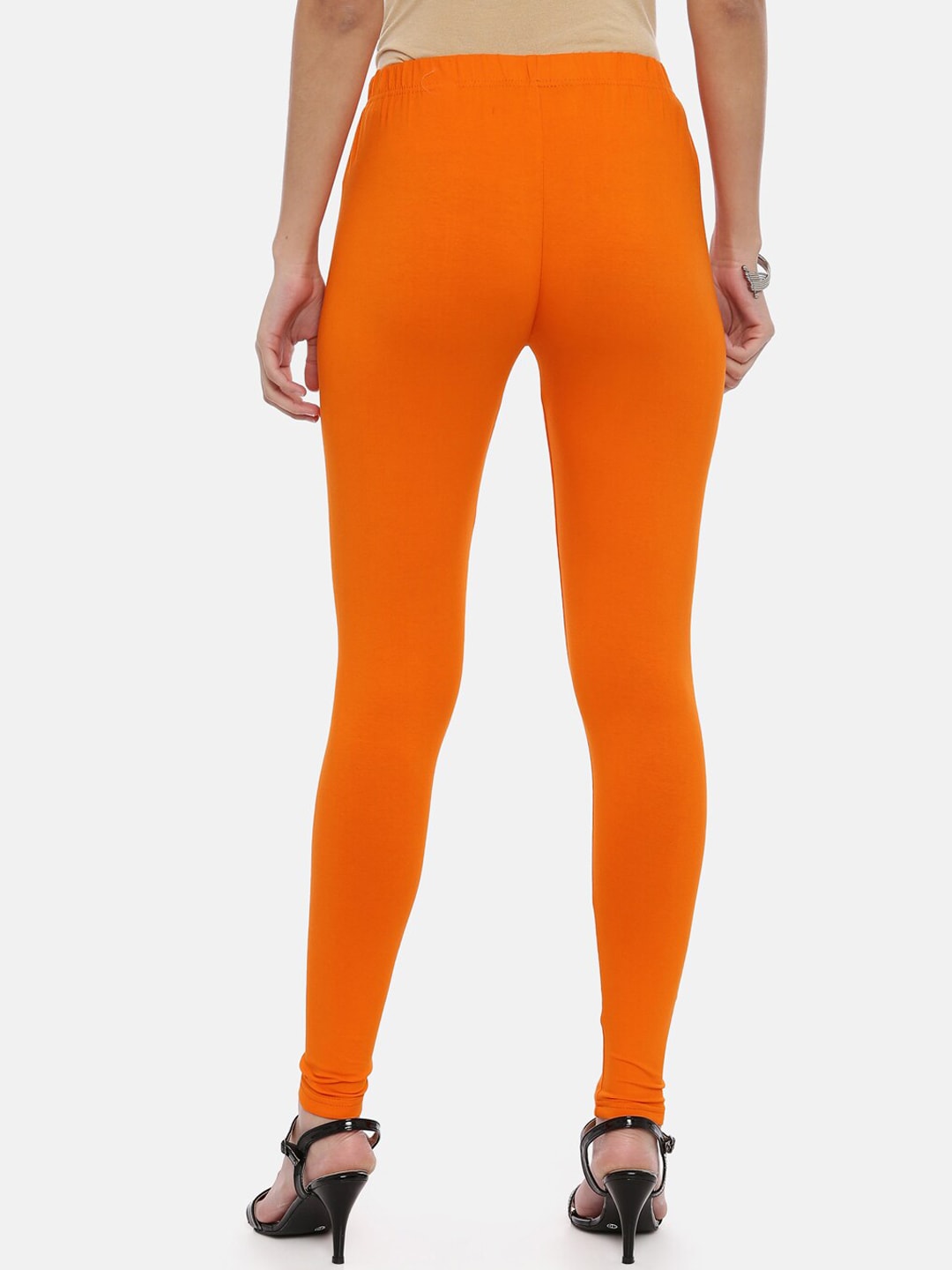 Orange solid slim-fit ankle-length leggings have an elasticated waistband, and slip-on closure