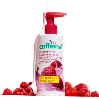 mCaffeine Brightening Raspberry Rush Serum Body Lotion SPF 50 PA+++