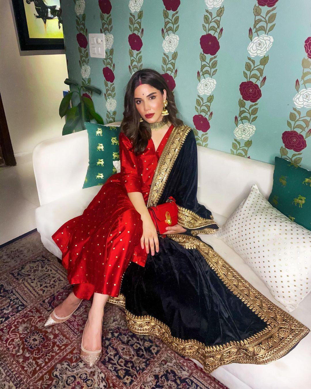 • Velvet Shawl with Embroidery Work throughout the shawl.