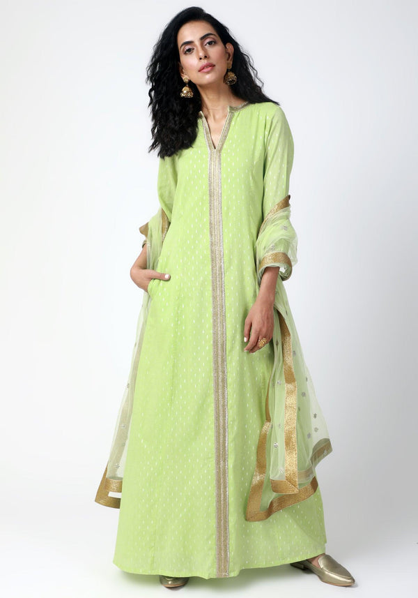 trueBrowns Green Lace Kurta-Pant-Dupatta - 2XS