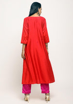 • Cotton silk kurta with gota lace highlight on sleeves, side slits and bottom hem and has lining through out.