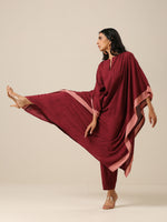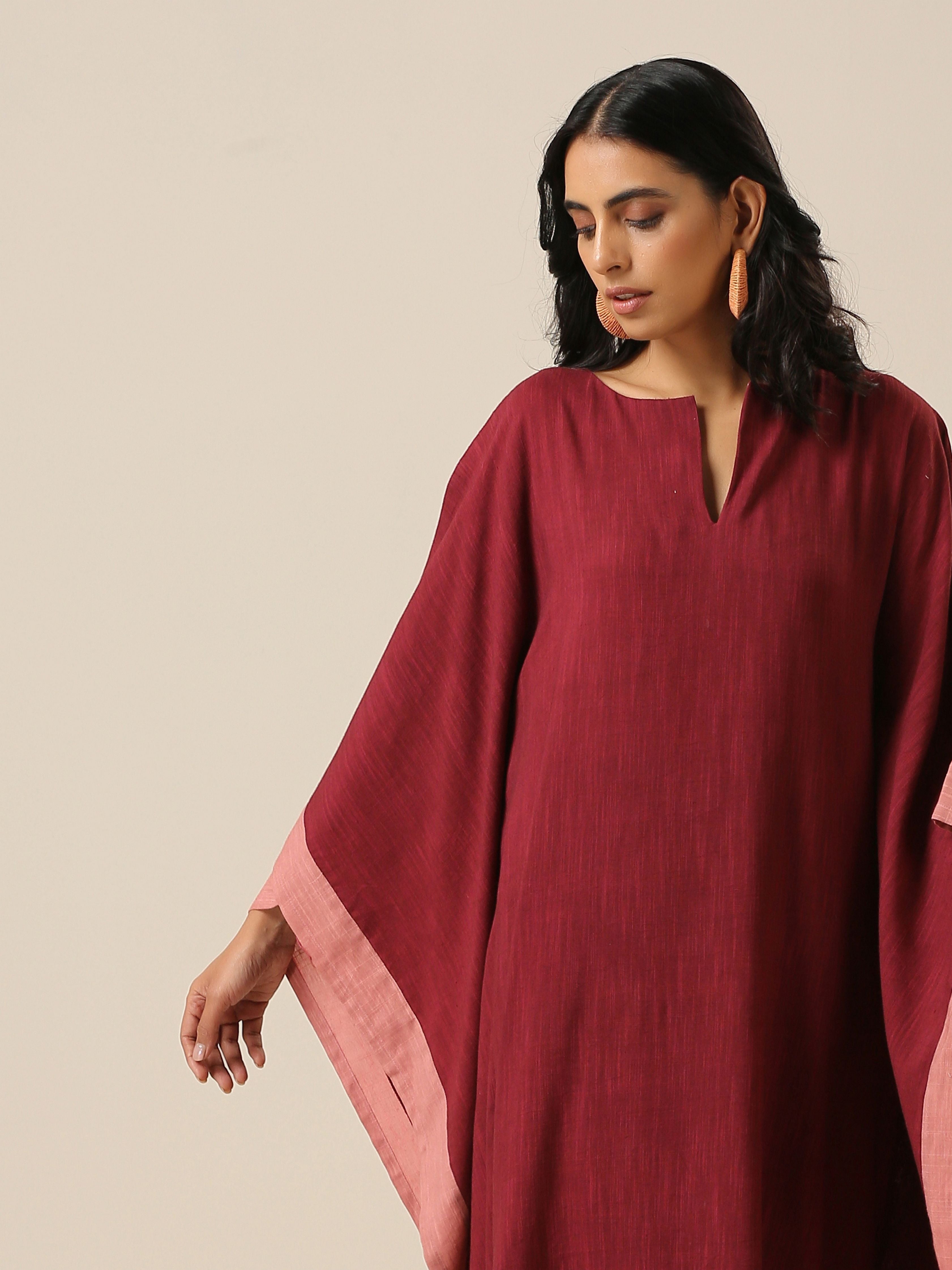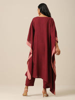 trueBrowns Ruby Wine Slub Texture High Low Kaftan Pant Set | Relove - M