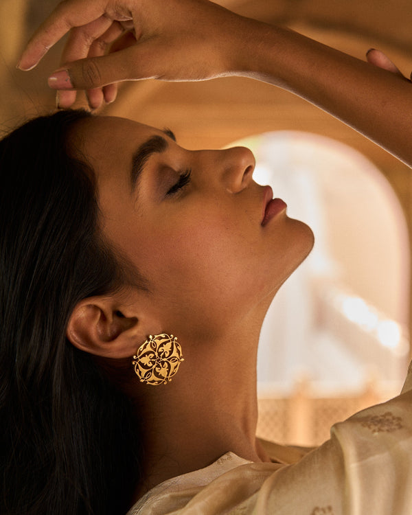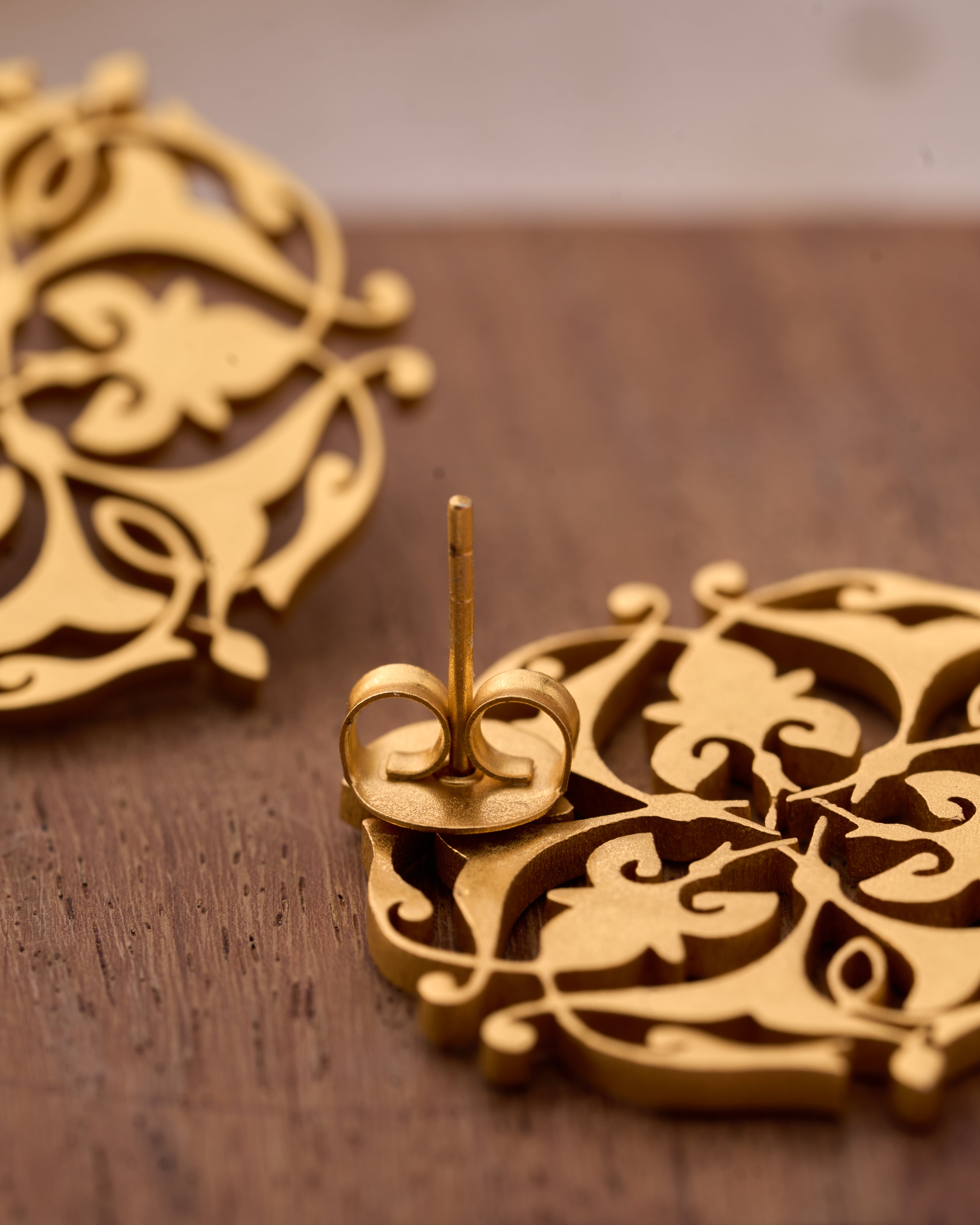 trueBrowns Gold-Polished Leaf Earrings - Free Size