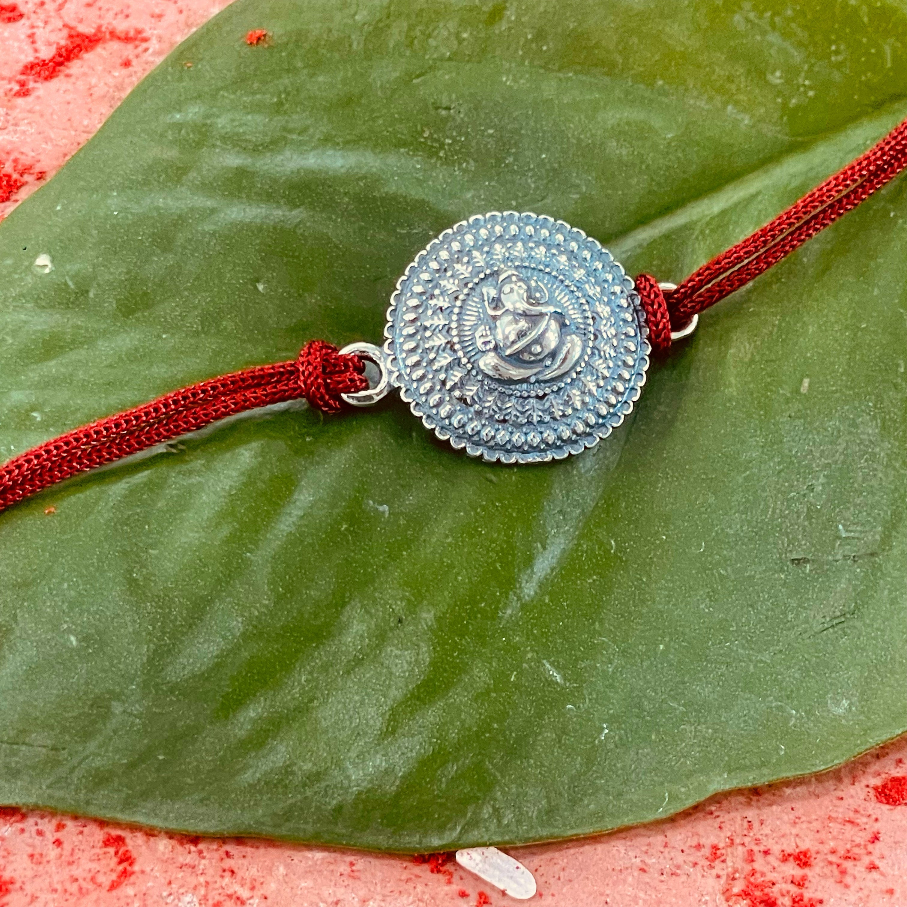 trueBrowns 925 Sterling Silver Embossed Ganesh Idol Thread Rakhi