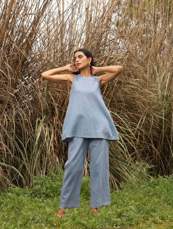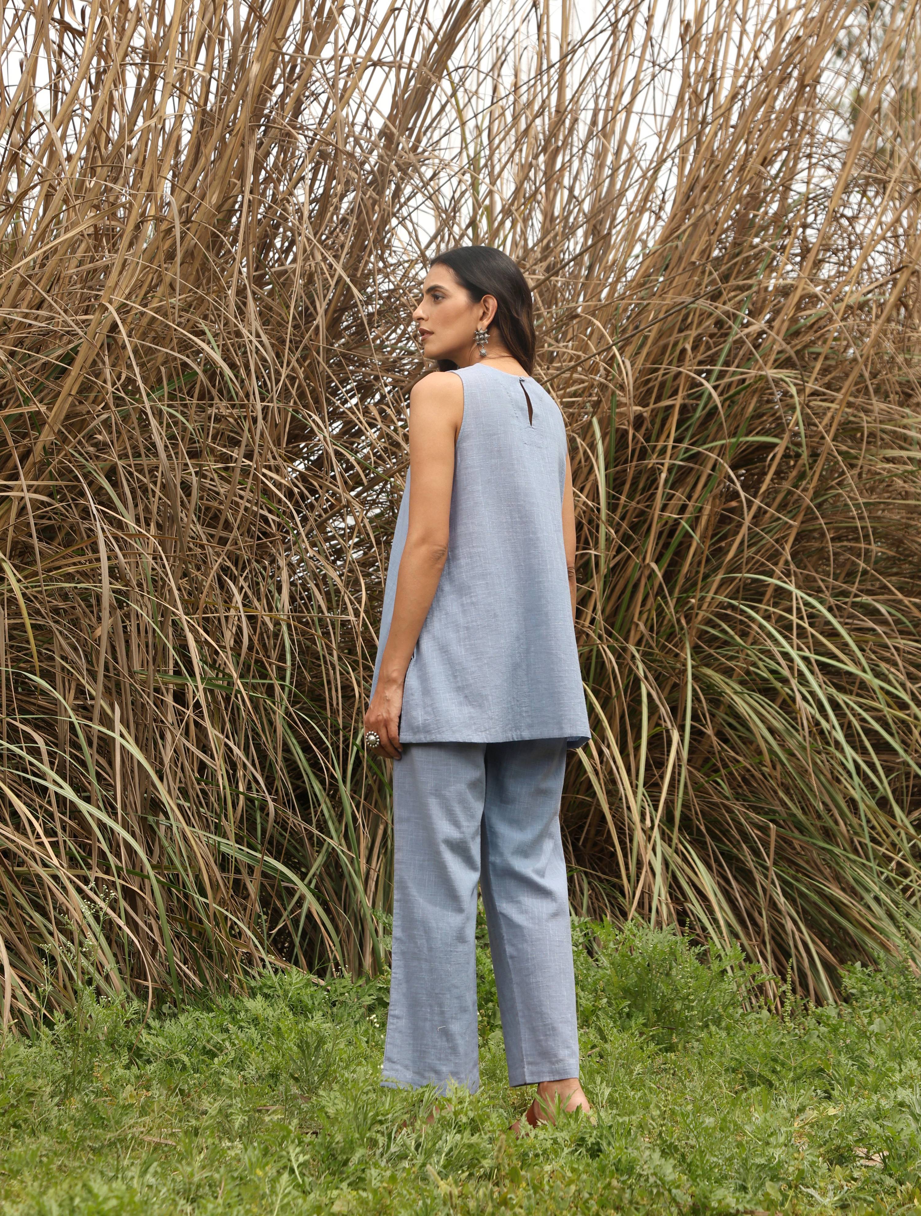 trueBrowns Blue Cotton Sleeveless Co-ord Set - 2XS