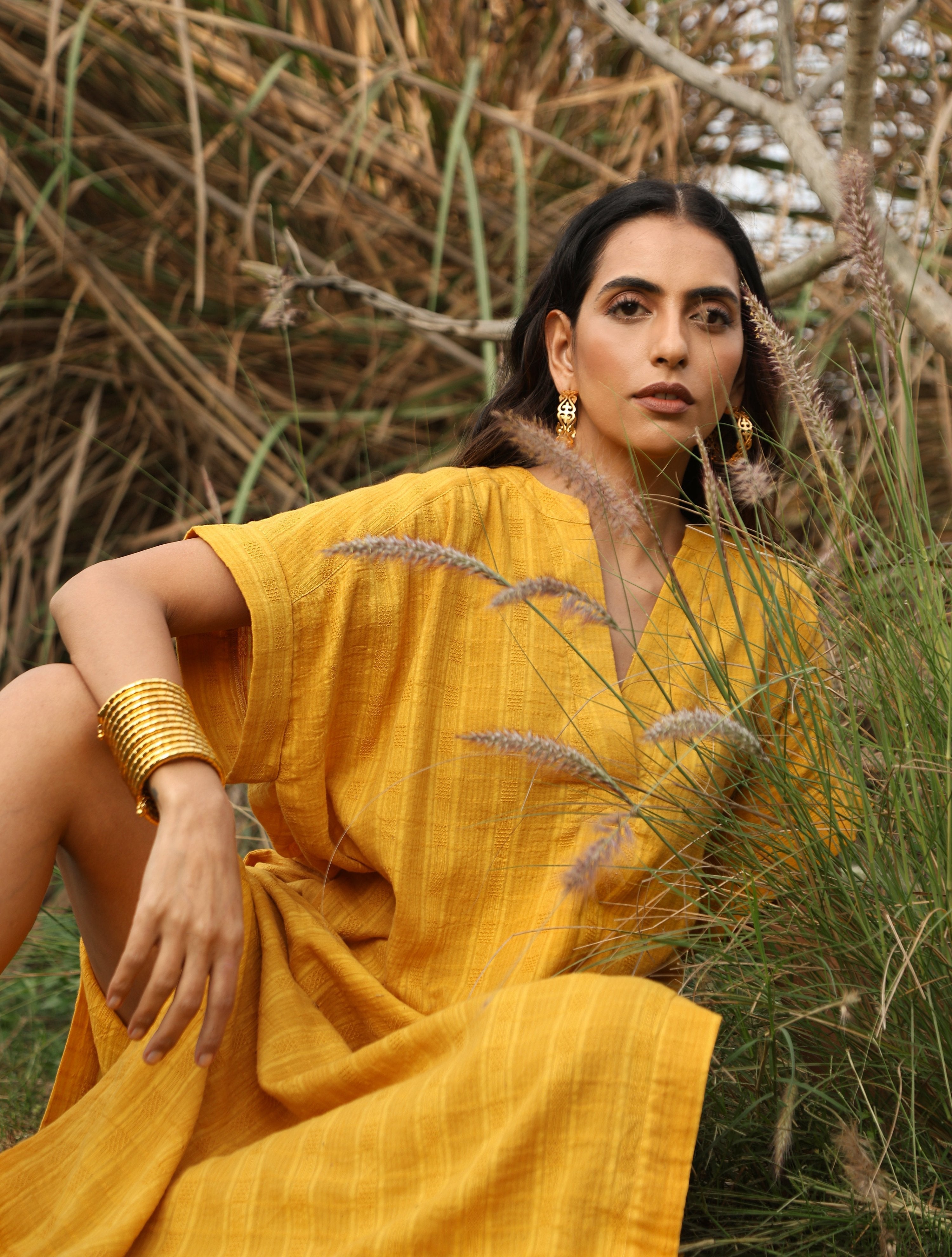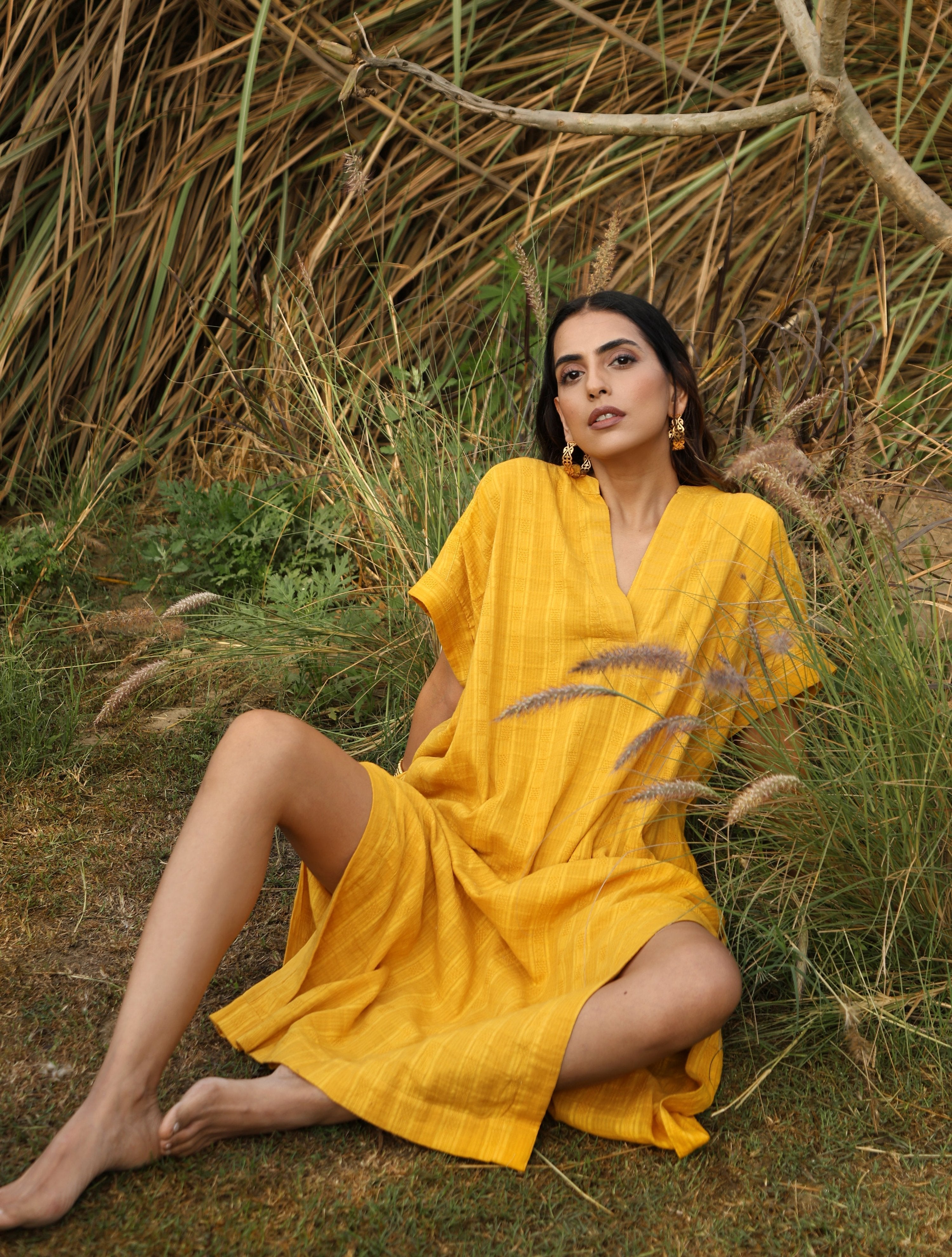 trueBrowns Mustard Cotton Dobby Oversized Dress - 2XS