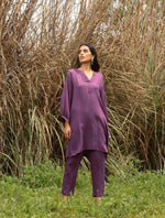 trueBrowns Purple Viscose Dobby Relaxed Co-ord Set - 2XS