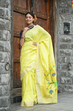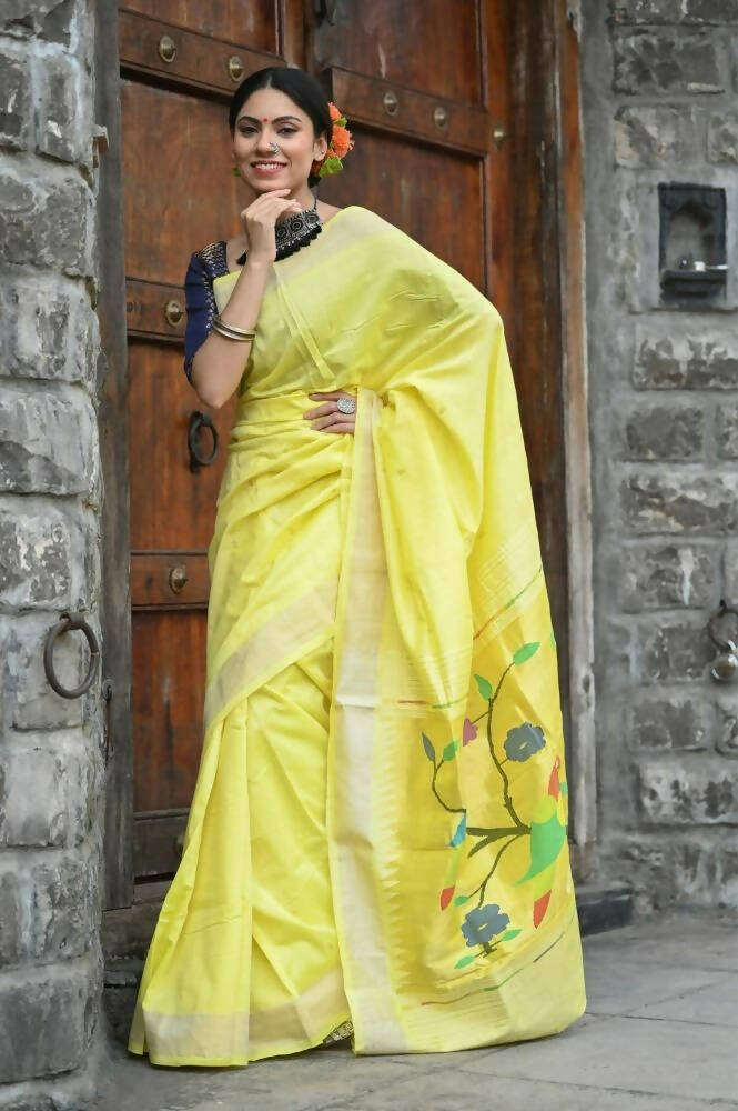 Handloom Pure Cotton Paithanis are classy and super stylish!! That gives you a break from regular sarees and makes you look elegant and royal, we would say a must-have in your wardrobe, and don't forget to share with us the compliments you get for this drape. Our Pure Cotton Paithani sarees come directly from the weavers of Maharashtra, yes we proudly support the local!!!. This saree will make you feel like having royalty in your wardrobe. -100% Authentic Cotton fabric & Pallu. - Weave of more than 80 hours - Handcrafted by senior talented weavers. -Variety of colors and premium saree Pair it with your favorite ornaments and make your own style statement!Be among the privileged few to know about new and awesome Indian products