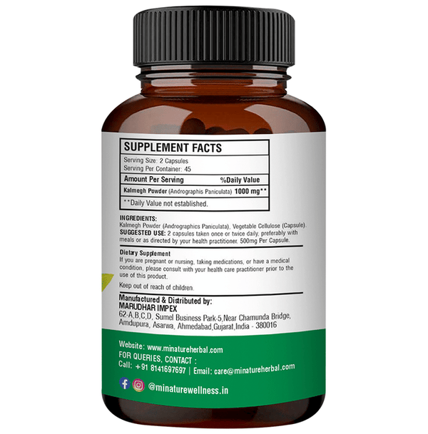 Minature Kalmegh Capsule is a capsule, rich in antioxidants that can help combat free radicals in the body. It can improve immunity and heart health. It may help to regulate blood sugar levels. Moreover, it can enhance digestive health.