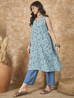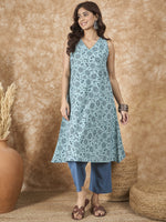 InWeave Mint Blue V Neck Aline Kurta Set
