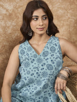 A cool and refreshing mint blue kurta with a V-neckline and A-line design. The V-neck adds a delicate touch, while the A-line cut ensures a flattering fit. The light blue color gives the set a soft and serene look, making it perfect for day events or casual outings.