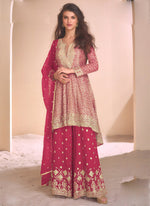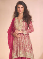 Vegaa Fashion Pink Georgette Embroidered Palazzo Suit