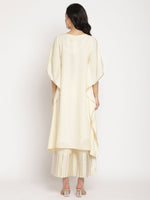Ahalyaa Women Off White Printed Gotta Patti Kaftan Style Kurta With Palazzos - XS