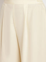 • Off White Poly Crepe Kaftan Kurta, Gotta Patti detail & Calf length with a straight hem, it has Striped yoke pattern, Kaftan shape, Boat Neck & three-quarter flared sleeves. Printed Off-white Poly Crepe Palazzo. it has a Partially elasticated waistband & Slip-on closure. Let your little Women flaunt her fashionable side with this clothing set from Ahalyaa. Comfy and stylish, it will make her look even more adorable.