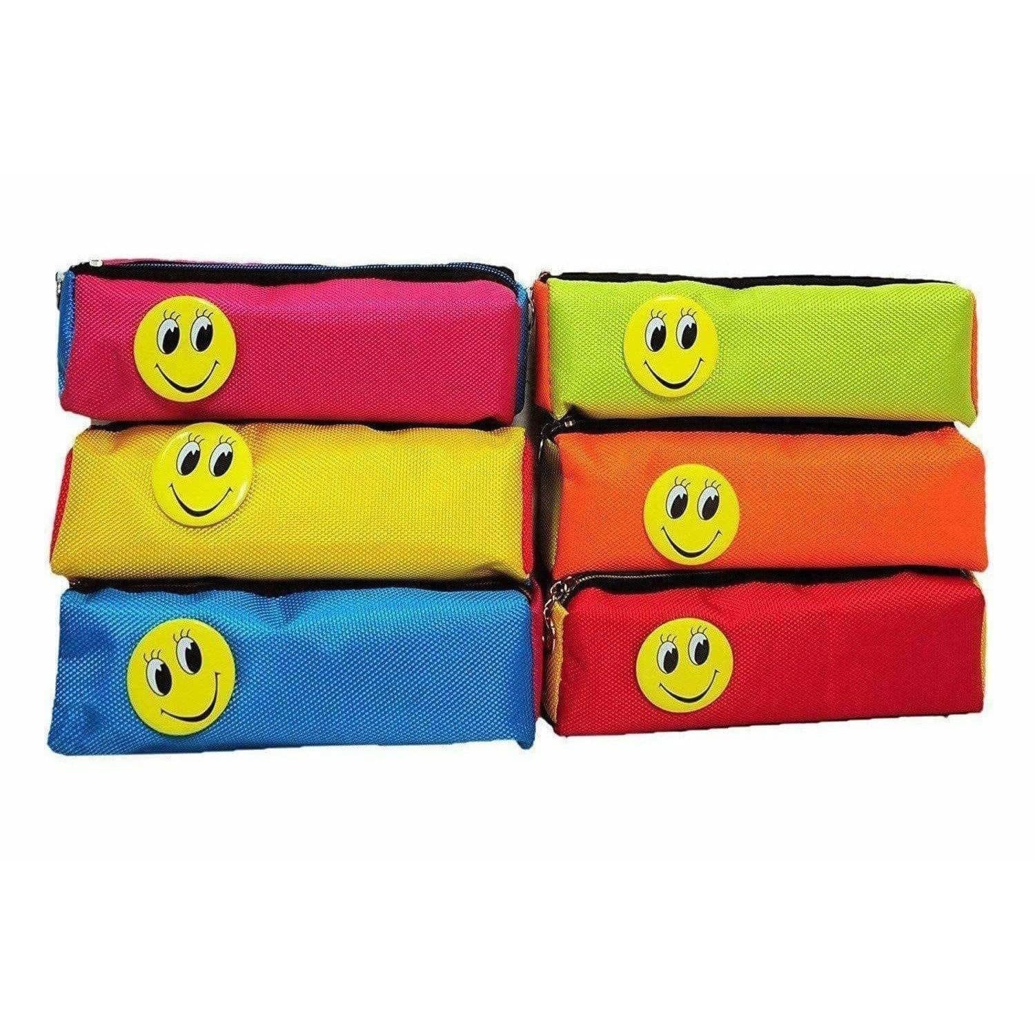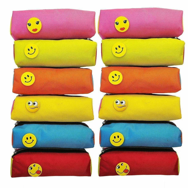 Bright Colour Multipurpose Smiley Pen Pencil Pouch Case - Pack of 12
