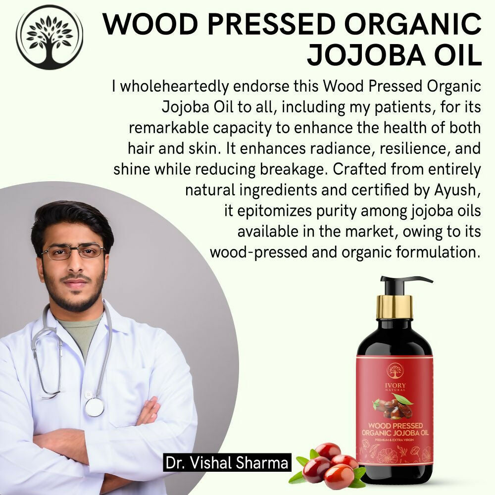 Ivory Natural Wood Pressed Organic Jojoba Oil, is perfect for both skincare and haircare. Made from jojoba plant seeds with a special cold pressing method, this premium-quality oil keeps all its natural benefits. It nourishes and moisturizes your skin, making it soft and glowing. Suitable for all skin types, it helps balance oil and keep your skin clear. Great for hair too, it conditions and strengthens, turning dry, frizzy hair into silky smooth locks. Upgrade your beauty routine with our pure and powerful jojoba oil and enjoy its natural goodness for your skin and hair.