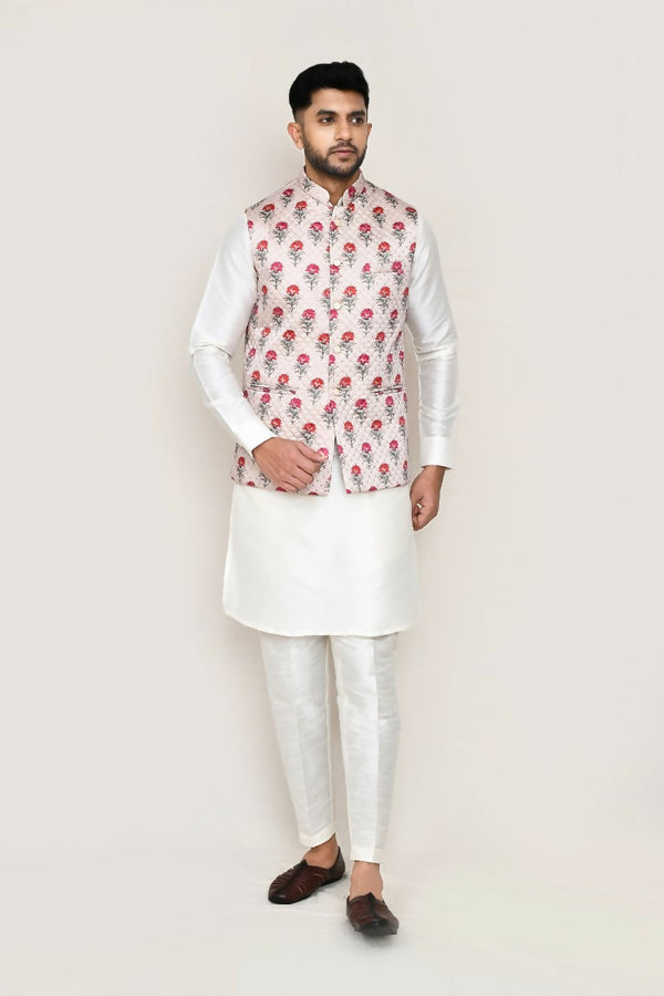 Joban Fashion White Colored Art Silk Fabric Kurta, Jacket With Straight Fit Pant