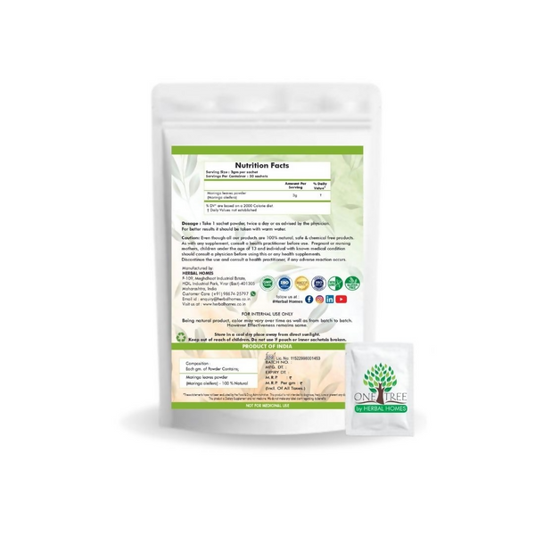 One Tree Moringa PowderHow To Use:Take 1 sachet with Luke warm water, once or twice daily, or as suggested by the expertNote: Each sachet of 3gm (3...