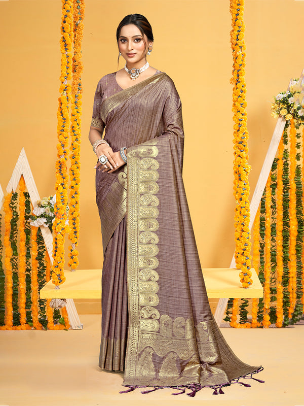 Sangam Prints Brown  Assam Silk Woven Work Traditional Saree - Free Size
