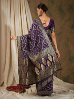 Sangria Woven Design Zari Kanjeevaram Saree Product Details Design Details Purple and golden kanjeevaram saree Woven design saree with woven de...