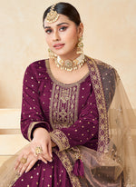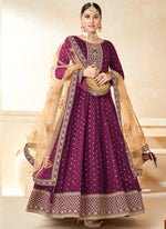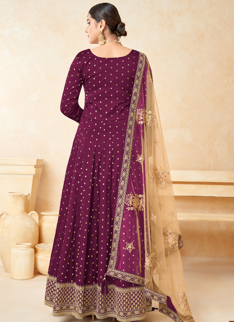 Vegaa Fashion Designer Wine Tafeta Silk Embroidery Anarkali Suit