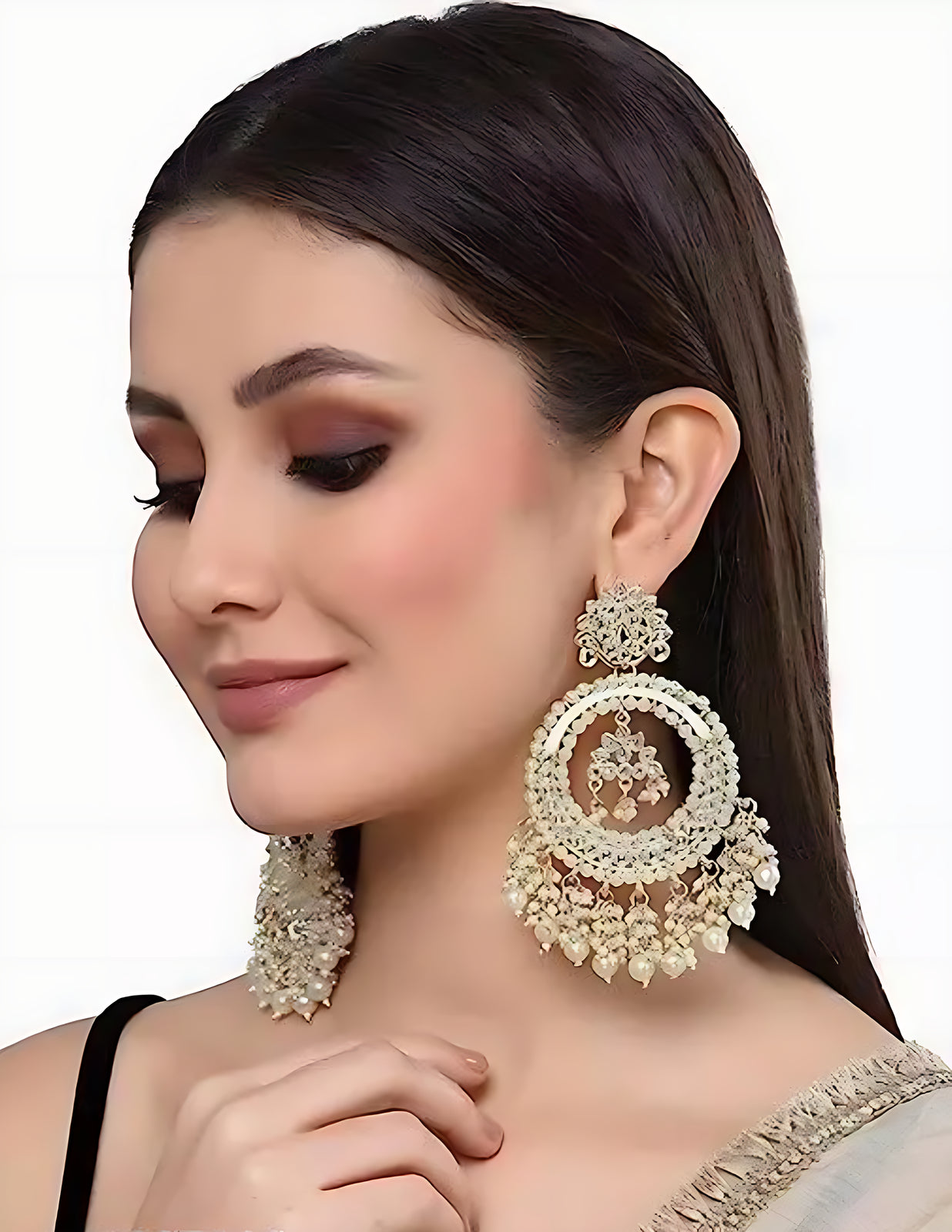 These statement earrings complement both traditional Indian attire and modern evening wear, adding a touch of royal elegance to any ensemble.
