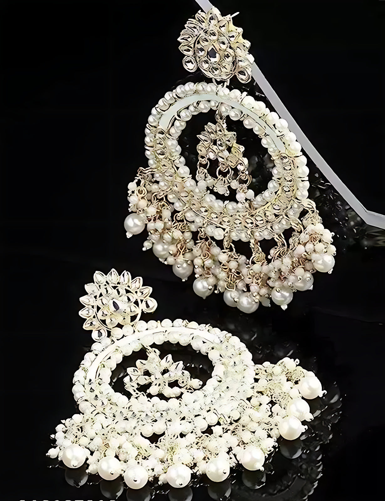 Jewel City Luxurious Pearl Chandelier Earrings - Traditional Indian Kundan Style Statement Jewelry for Wedding & Festive Wear