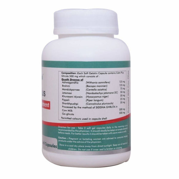 Way2herbal Calm Plus CapsulesIngredients:Ashwagandha, Brahmi, Shankhpushpi, Jatamansi, Mandukparnee, Ajwain, Pippali, Cow GheeDirections For Use: T...