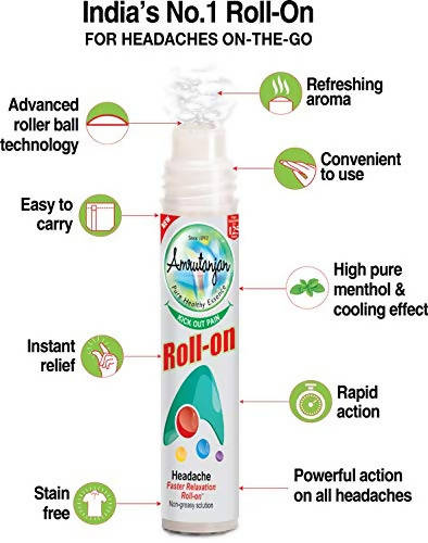 Amrutanjan Roll On How to use:  Apply Roll-On over the forehead and experience instant relief from headache. Legal Disclaimer: Statements regardi...