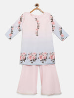Ahalyaa Pink Crepe Floral Print Kids Kurta Sharara Set With Dupatta For Girls