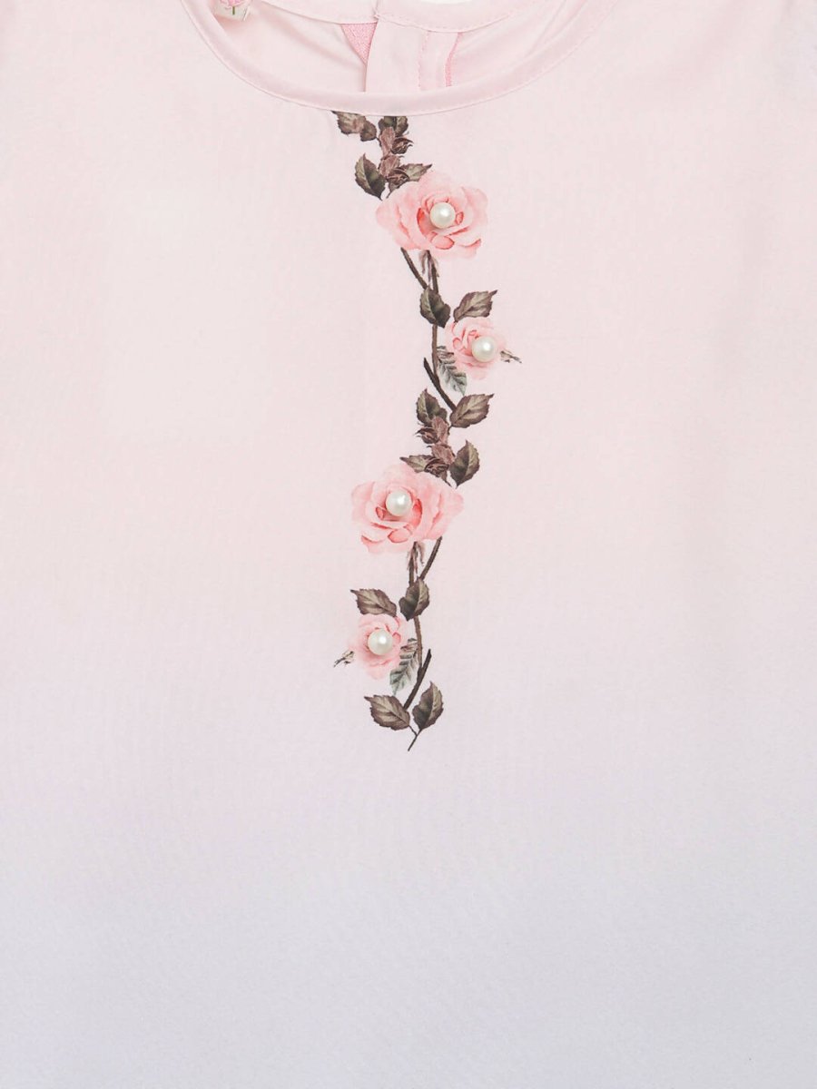 Pink is a fun colour, it's girly & cute for a little girl. The light weight pretty 3 piece outfit has pretty roses all over with tiny pearl buttons to add a bit of deatiling. Very comfortable for a full day outfit for the child.Wash In Cool Water, Use Mild Detergent, Do Not Bleach, reverse iron, wash dark colors seperately, do not soak.