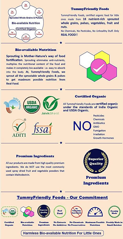 TummyFriendly Foods Certified 100% Organic Sprouted Ragi, Oats, Red Lentil, Banana Porridge Mix | Made of Sprouted Whole Grain Ragi, Oats | Rich in Calcium, Iron, Fibre & Micro-Nutrients |200g Cereal (200 g)