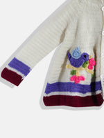 Chutput Kids Woollen Hand Knitted Full Sleeves Self Desgin Hoodie Dress For Baby Girls - Cream
