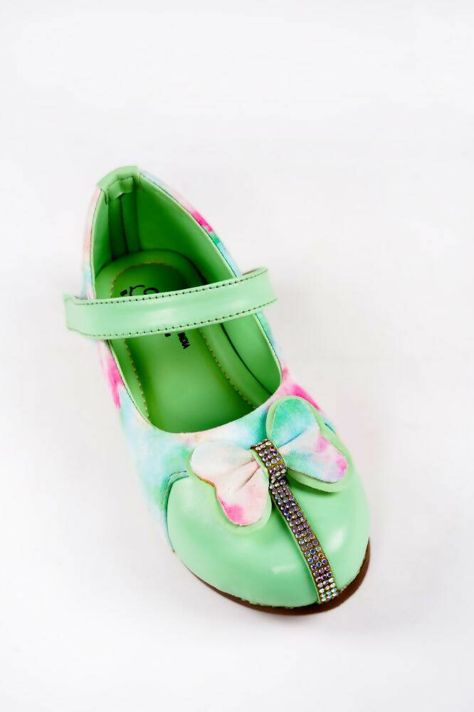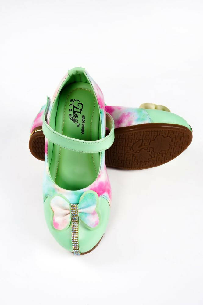 Tiny Bugs Girls Bow Embellished Party Wear Ballerinas - Multi