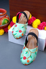 Tiny Bugs Girls Embroidered Strap Ethnic Jutis-Green - 4.5-5 Y