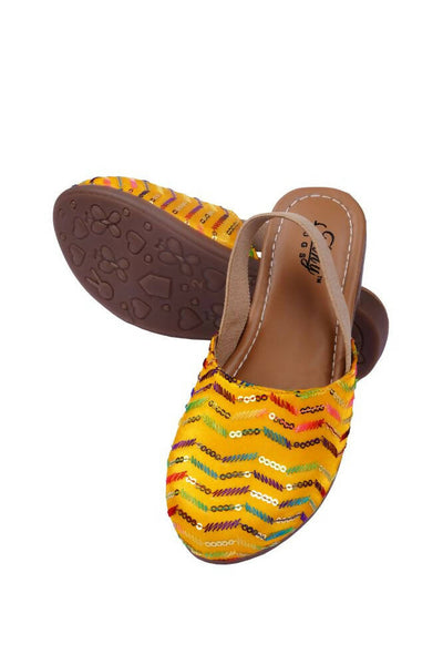 Tiny Bugs Girls Embroidered Strap Ethnic Jutis-Yellow - 4.5-5 Y