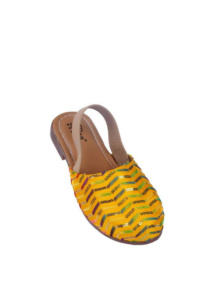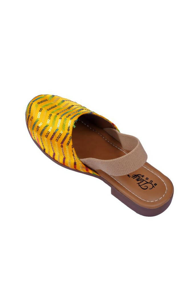Tiny Bugs Girls Embroidered Strap Ethnic Jutis-Yellow