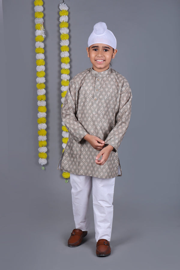Bluesaanchi Grey Printed Kurta Set – Elegant & Classic for Your Little One