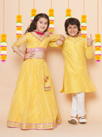 Boys Yellow Self Design Booti Kurta with Pyjamas for Kids - Bhama - Distacart