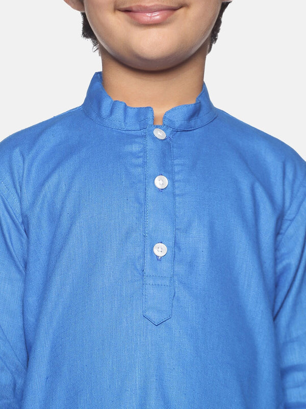Sethukrishna Boys Blue & White Pure Cotton Kurta with Churidar Product Details Blue solid Kurta with ChuridarKurta design: Woven design so...