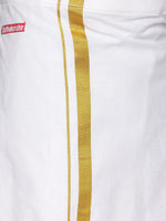 White and gold solid veshti ,has a slip-on closure